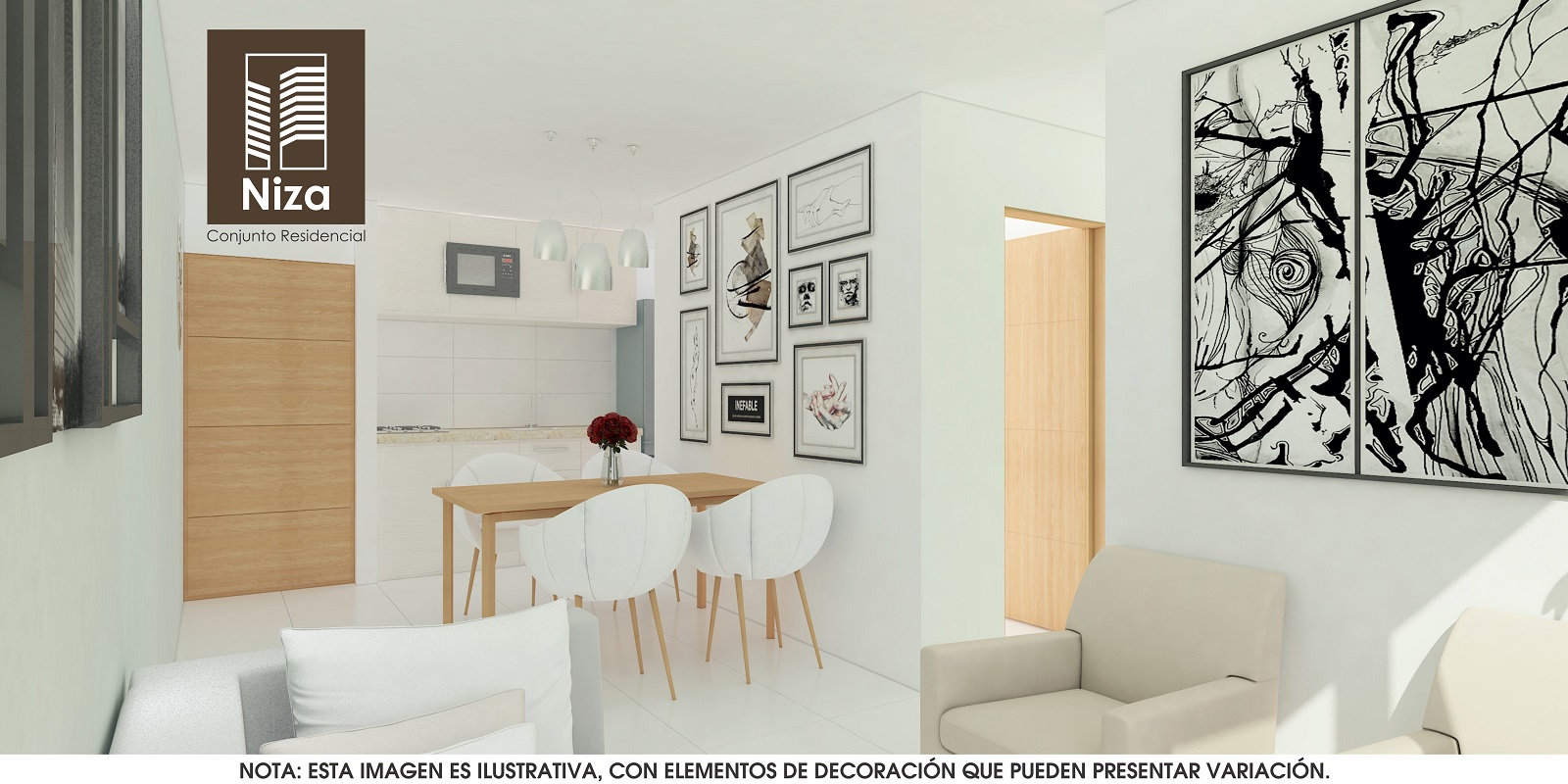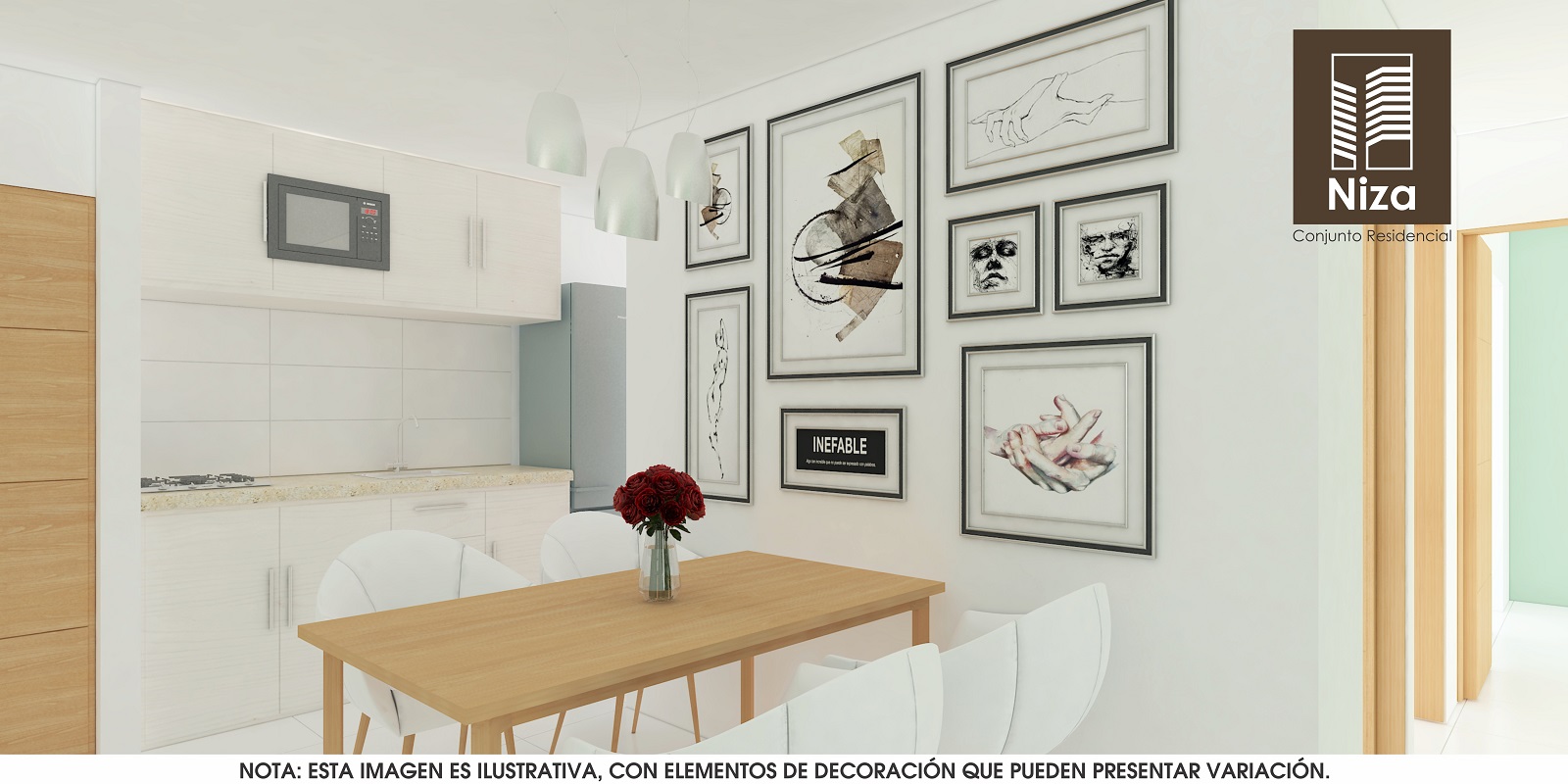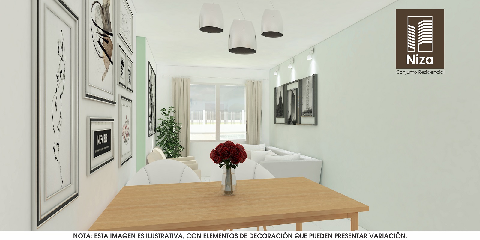 Apartamentos de tres alcobas, dos baños, sala-comedor, cocina, zona de labores y balcón, con áreas desde 62m2 hasta 72m2